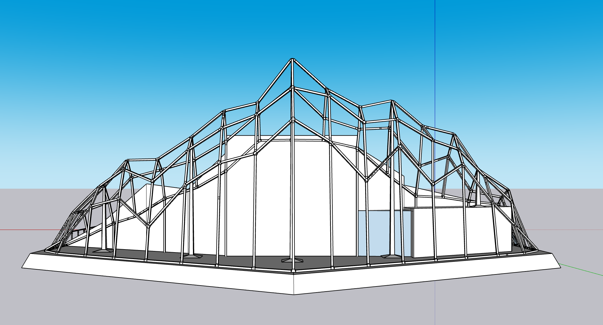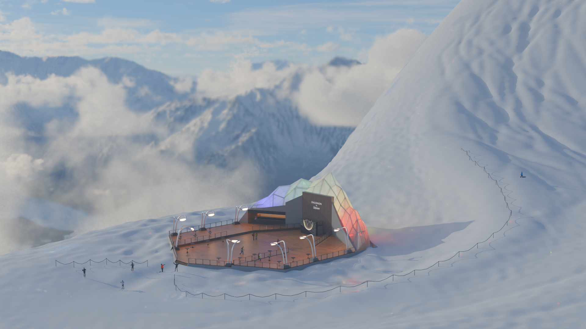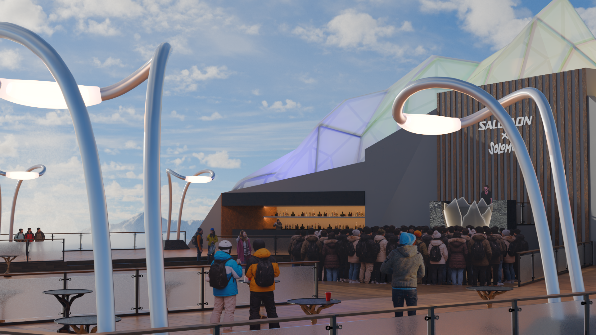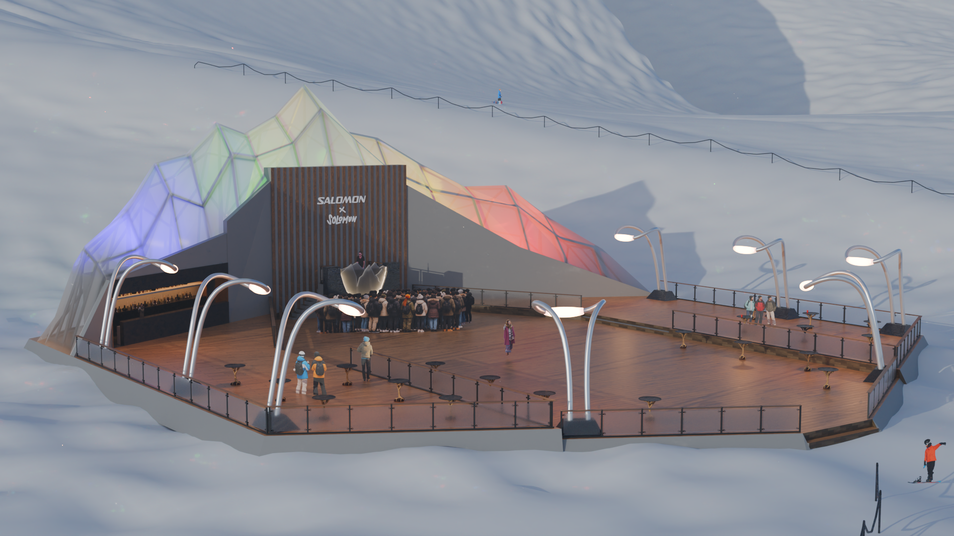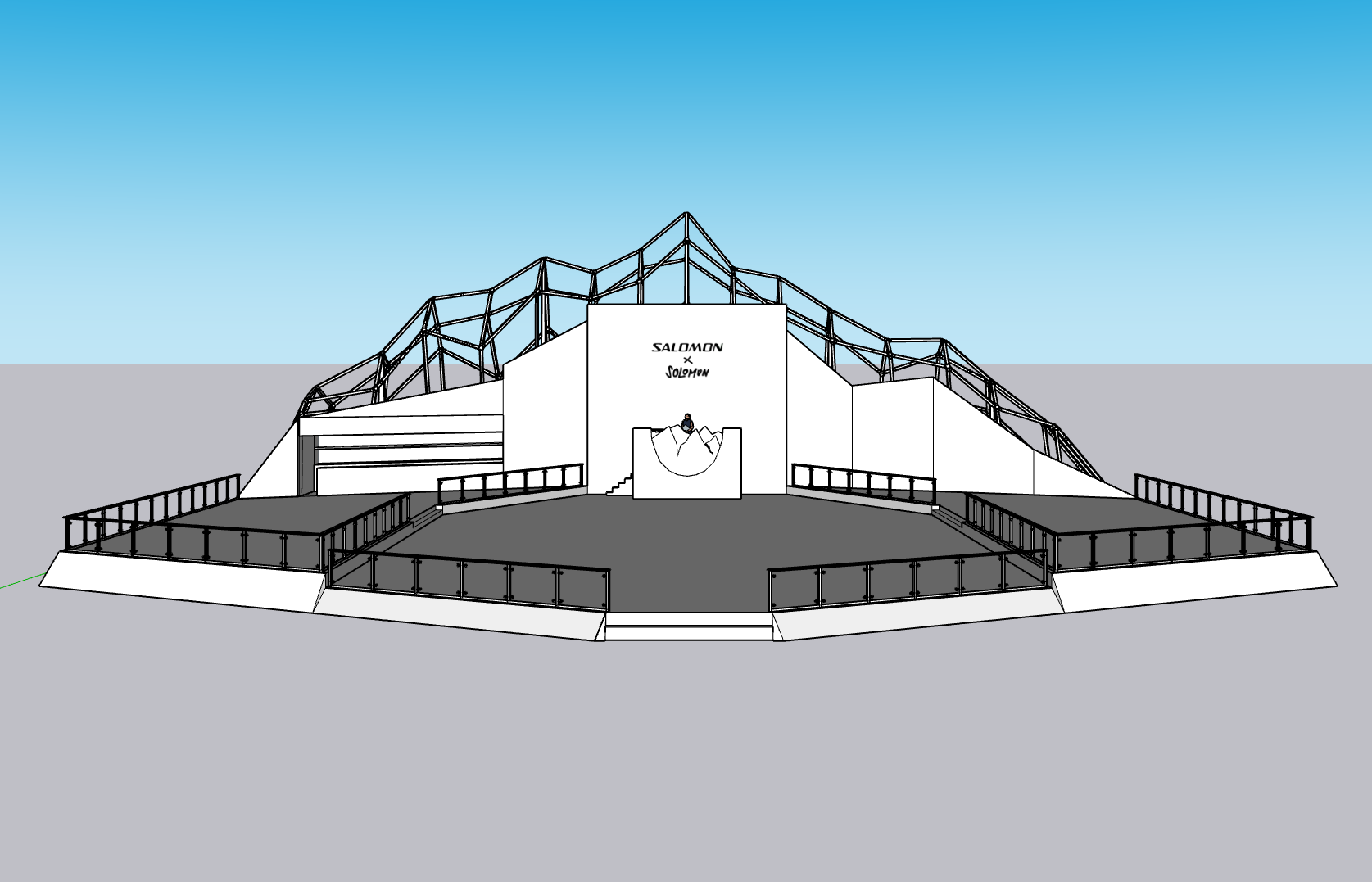 Initial Sketchup model for the Salomon x Solomun mockup, a hypothetical brand activation for the outdoor gear company’s alpine line featuring their DJ homophone counterpart.